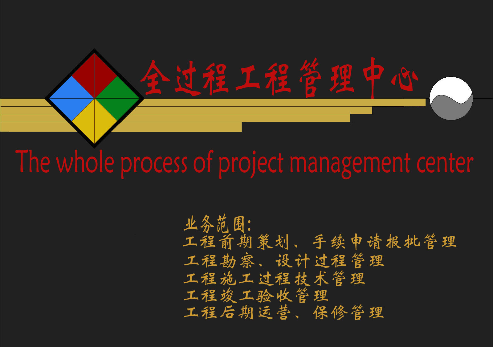 ●業(yè)務(wù)范圍:為甲方提供工程項(xiàng)目全過程咨詢服務(wù),包括:前期項(xiàng)目建議書、可行性可研報告的編制、項(xiàng)目實(shí)施總體策劃、報批報建管理、合約管理、地質(zhì)勘察管理、規(guī)劃和設(shè)計各個環(huán)節(jié)管理、工程監(jiān)理、施工過程的技術(shù)支持、招標(biāo)代理、造價控制、驗(yàn)收移交、后期運(yùn)營和維護(hù)技術(shù)支持等。